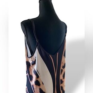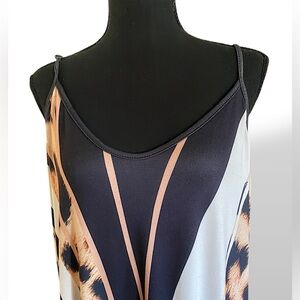 Step out in style with this elegant leopard print maxi dress. Perfect for any occasion, this dress features a striking black and tan pattern that adds a touch of sophistication to your wardrobe. Adjustable straps, Soft to the body with 5% Spandex. Like New no call-outs. Great for summer outings, partying, lounging, beach coverup