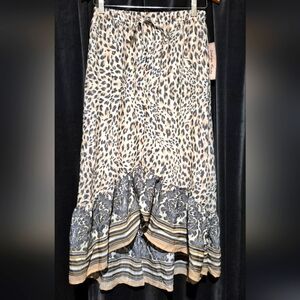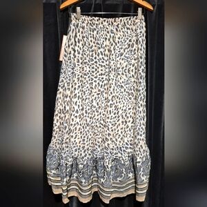 Step out in style with this elegant leopard print midi skirt. The cream and black design offers a versatile look for any occasion.