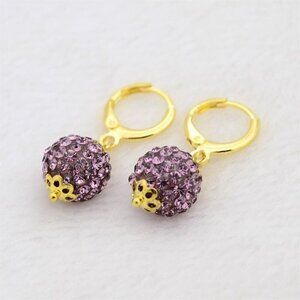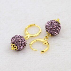 Elegant Light Amethyst Austrian Crystal Ball Dangle Purple and Gold Earrings