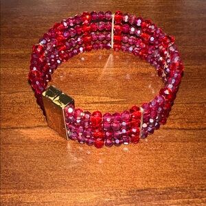 Add a touch of elegance with this stunning red beaded bangle bracelet. Dressed up or down you’re always in style. In great condition. Fits size 7-8 wrist.