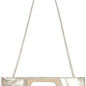 Features: Sleek, slim profile with a modern cut-out handle that makes a subtle statement. Features a magnetic closure for easy access and a chain that can be used to wear it as a shoulder or crossbody bag, giving you versatile styling options. Spacious enough for your phone, wallet, keys, and essentials, yet refined enough to complement any dressy outfit.