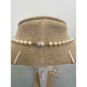 Elegant Long Faux Pearl Necklace With Faux Silver-Tone Clasp