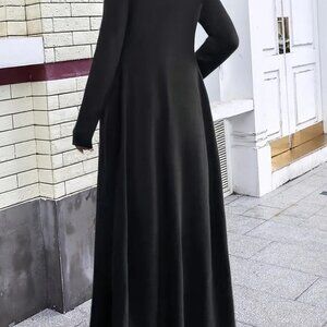 An Elegant Long Casual Solid Black Knitted Cardigan. (XXL (Pit to Pit=~22.75inches) (Length=~52 Inches)