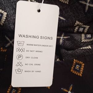 Step out in style with this elegant long sleeve dress featuring a captivating black and red pattern. Ideal for any occasion.