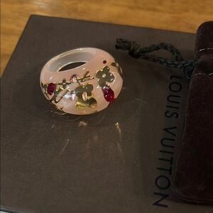 Elegant Louis Vuitton Gold and Pink Inclusion resin Women's Ring