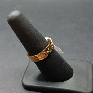 This elegant gold ring features striking green and red accents, perfect for adding a touch of sophistication to any outfit. Love Ring Size 7. New With Tags