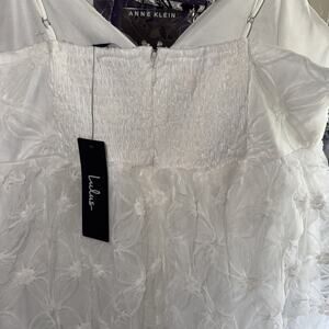 NWT White Lulus Babydoll Midi Ivory Tulle Dress Floral NEW w/Tag Size Large