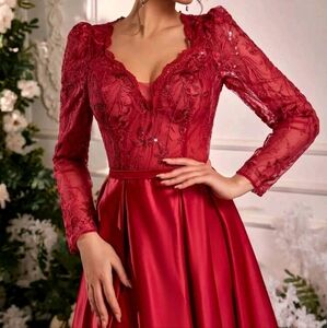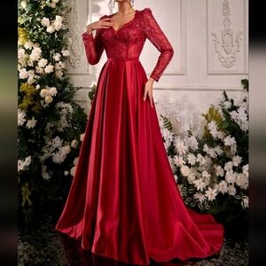 Elegant Luxurious Romantic White V-Neck Long Sleeve French Lace And Chiffon