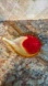 Add a touch of elegance to your home with this stunning hand blown art glass red, amber, and cream dish. Perfect for displaying on a coffee table or shelf.