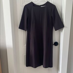 Excellent preowned condition! This sophisticated dark gray sheath dress by MM Lafleur is perfect for work or cocktail occasions. Featuring a classic crew neck and short sleeves, unlined, with pockets, it offers a sleek and polished look. The midi length and minimalist design make it a versatile addition to any wardrobe.