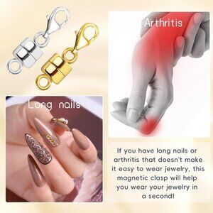 Features: These high-quality brass magnetic clasps are polished to a smooth finish, combining strength and style. Perfect for securing necklaces and bracelets easily, especially for those with long nails or arthritis. The set includes 12 durable clasps in both gold and silver tones, making them ideal for various DIY jewelry projects.