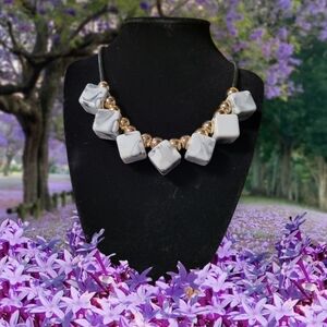 This stunning necklace features elegant marble-like stones paired with gold accents, perfect for adding a touch of sophistication to any outfit.