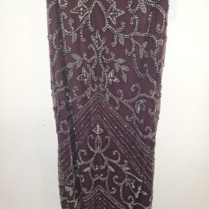 Stunning maroon dress with intricate beaded design. Perfect for formal occasions. It is beautiful. The entire dress has bead work, which makes it heavy. Originally $268 from Norstrom. Size 14, NWT and extra beads.