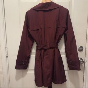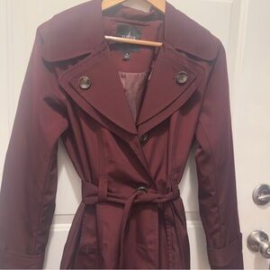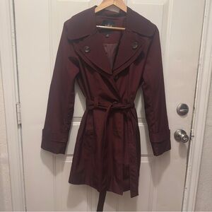 Step out in style with this elegant maroon trench coat. Its timeless design ensures a chic look for any occasion.