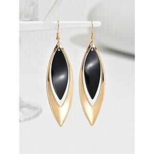 Elevate your outfit with these stunning gold and black teardrop dangle earrings. Featuring a sleek double-layer marquise design, these earrings exude modern sophistication and bold elegance. The high-shine gold outer frame pairs beautifully with the glossy black inner detail for a striking contrast that complements both day and evening looks.