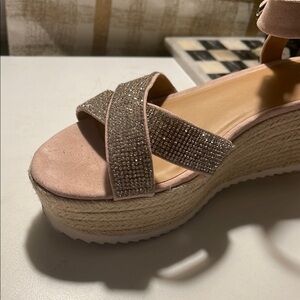 Elegant Material Girl Cream and Silver Wedges with Criss-Cross Straps