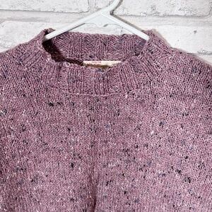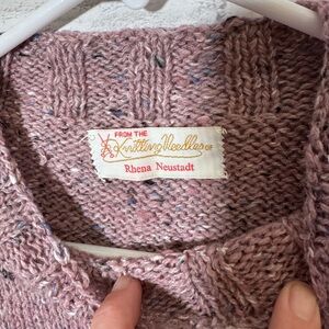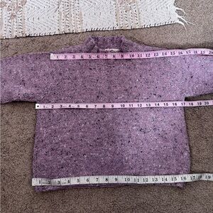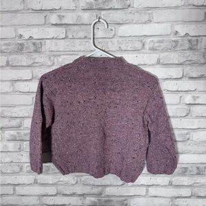 Hand made wool sweater. Stay warm and stylish with this elegant mauve knit sweater. Perfect for layering and adding a touch of sophistication to your wardrobe. Not super heavy. Multi color pattern. Could be a woman’s cropped 3/4 sleeve or for a child. Please see measurements. Good preowned condition