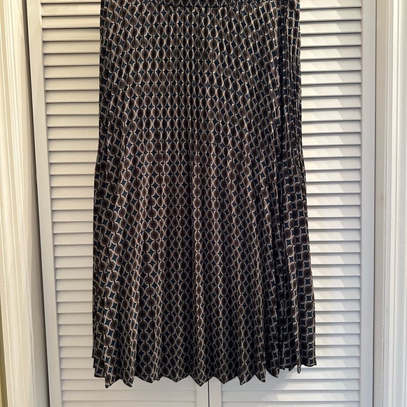 This gorgeous Max Studio skirt features a striking green and brown retro graphic pattern, perfect for any occasion. Pleats. Lined. Elastic waistband. Its unique design adds a touch of sophistication to your wardrobe. Size XL. NWT.