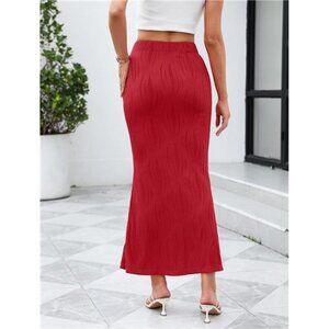Timeless Texture: Featuring a solid color with a ribbed pleated texture, this skirt exudes sophistication. The vertical lines create a lengthening effect, and the fabric's natural drape enhances movement, making it a versatile and chic wardrobe staple