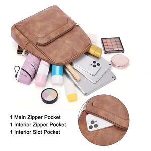 Features: A sleek rectangular shape with a minimalist vibe, crafted from soft faux leather that feels smooth and durable. Perfect size to hold a 9.7" iPad, with multiple pockets including utility, zipper, and interior slots to keep everything organized. Adjustable and removable straps make it easy to wear as a backpack, shoulder bag, or handbag.