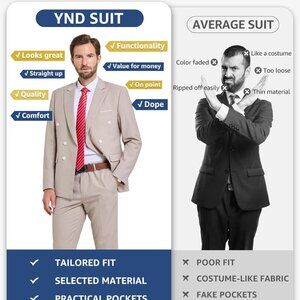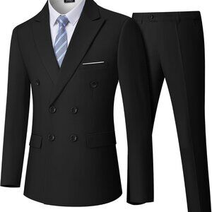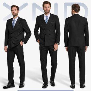 Features: Includes a tailored 3-piece set with a stretch fabric that moves with you, giving a modern slim fit silhouette. The double-breasted jacket, matching pants, and a bonus silk tie make it a complete look — whether you’re the groom, a guest, or attending a special event. Chrome buttons and genuine design details add a touch of sophistication.