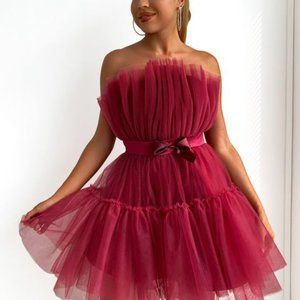 Elegant Mesh Rose Dress Ball Gown Mini Dress