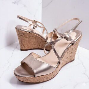 Step out in style with these elegant metallic wedges from Christian Louboutin. Perfect for any occasion, these wedges offer both comfort and sophistication with the classic red bottom.