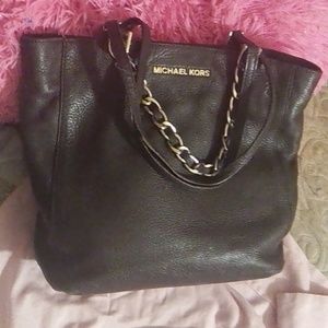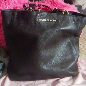 "Up for grabs is this elegant Michael Kors leather tote! Boasting a rich black hue, this bag is as versatile as it is stylish.