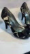 Elegant Michelangelo Black and White Heels with satin bow and heel.