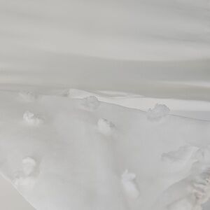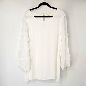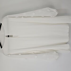 Elegant Milk White Textured Blouse w Sheer Embellished Sleeve & Teardrop Back