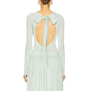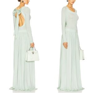 Step out in style with this elegant mint green maxi dress. Perfect for any occasion, this dress offers a sophisticated look with its flowing design and open back detail. A must-have addition to your wardrobe.