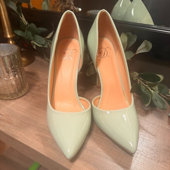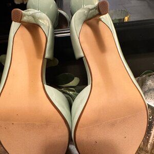 Chic, feminine, and timeless these mint green patent leather heels are the perfect statement shoe.