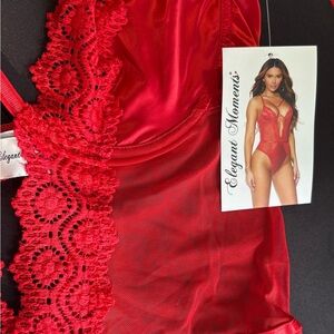 Experience allure with this Elegant Moments chemise. Features delicate lace and a striking scarlet shade. Perfect for a captivating look.