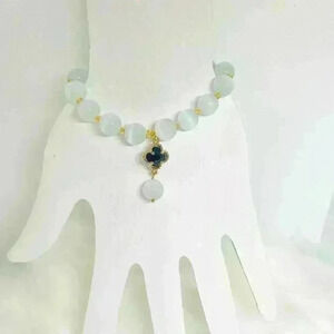 As enchanting as the night sky, this Elegant Moonstone Four-Leaf Clover Bracelet will make you feel graceful and glamorous. Finished with an icy white moonstone, 10mm beads, and a two-inch diameter, this bracelet is as elegant as it is comfortable, with its elasticity fit for most wrists. Add the perfect touch of luck with its beautiful four-leaf clover charm.