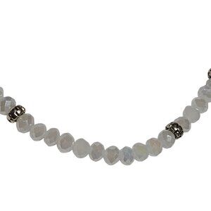 This moonstone bracelet features faceted beads interspersed with silver accents, offering a refined elegance. With its stretch design, it fits comfortably on various wrist sizes, making it an adaptable accessory for both casual and formal settings. The natural iridescence of moonstone adds a subtle shimmer, enhancing its sophisticated appeal.
