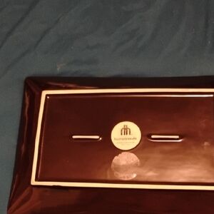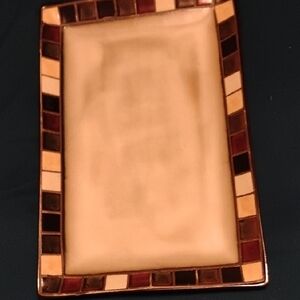 Add a touch of elegance to your home with this stunning rectangular tray. Featuring a mosaic edge in cream and brown, it's perfect for any decor style.