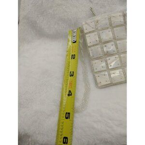 Elegant Mother of Pearl Beaded Satin Clutch Purse with Zipper & Wrist Strap