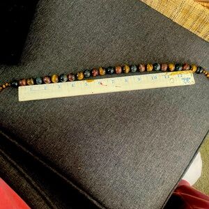 This stunning necklace features a blend of vibrant beads in rich hues. Perfect for adding a pop of color to any outfit.