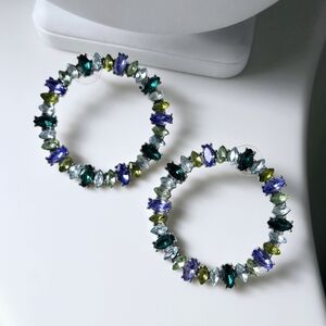 Add a touch of elegance with these stunning multicolor gemstone hoop earrings. Featuring vibrant shades of blue, green, and purple, these earrings are perfect for any occasion.