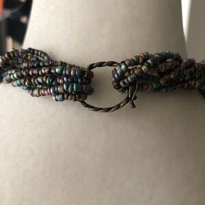 A stunning multicolor beaded necklace, four endless strands of earth-and-sky colored seed beads offer various options for wearing: endless, doubled, twisted/ doubled, knotted. A silver clip to hold doubled/twisted strands together is included. Zoom into the photos.