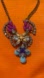 This stunning statement necklace features vibrant purple, blue, and cream stones, perfect for adding a pop of color to any outfit. Its intricate design and bold colors make it a must-have accessory.