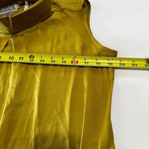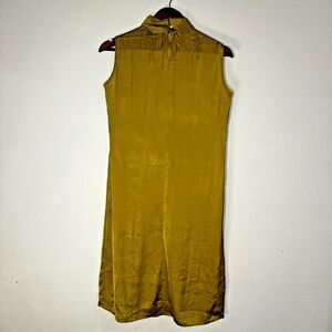 This elegant sleeveless dress in a rich mustard hue is perfect for any occasion. Its sleek design offers a sophisticated look.