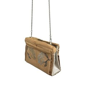 This elegant yellow evening clutch featuring a chain strap and kiss-lock closure. Vintage motif and adorned with sparkling embellishments, it adds a touch of glamour to any outfit.