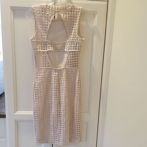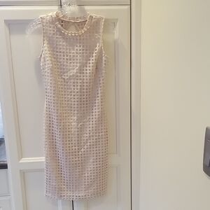 This elegant cream sleeveless dress is perfect for any occasion. Its sophisticated design offers a timeless look.