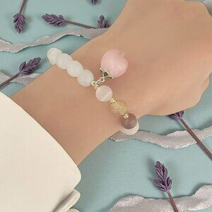 Elegant Natural Opal Beaded Dainty Stretchy Bracelet with Pink Peach Charm