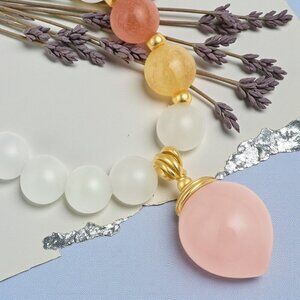 Enhance your accessory collection with this stunning natural opal beaded stretchy bracelet. Featuring smooth, round opal beads that radiate an ethereal glow, this bracelet is complemented by a charming pink peach pendant and delicate accents in warm gold tones. Perfect for adding a touch of elegance to any outfit, whether for casual wear or a special occasion. The stretchy design ensures a comfortable fit for any wrist size. Don't miss out on this trending, must-have piece that blends boho chic with a dash of sophistication!