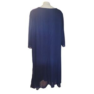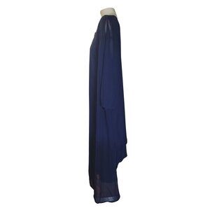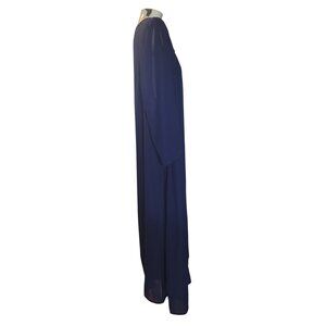 Cascading silhouette defines this stunning long dress. A graceful navy hue lends a timeless elegance, complemented by the delicate beaded detailing around the neckline, which adds a touch of subtle sparkle, catching the light with every movement. The flowing design ensures a comfortable fit, while the maxi length creates a dramatic and sophisticated look. The soft draping offers an ethereal feel, enhancing the dress's overall allure.