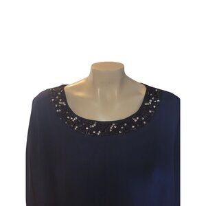 Keywords: maxi dress, formal dress, evening gown, navy dress, beaded neckline, long dress, party dress, special occasion dress, wedding guest dress, elegant dress, gown