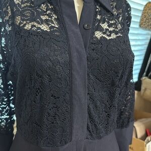 This elegant navy blue lace dress features intricate lace detailing and a classic silhouette, perfect for any occasion.