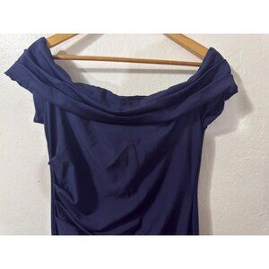 Elegant Navy Blue Maxi Dress Cowl Shoulder
